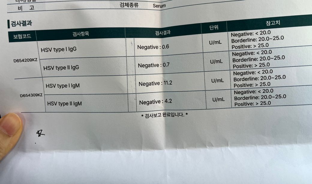 헤르페스 검사지 해석 부탁드려요!ㅠㅜ