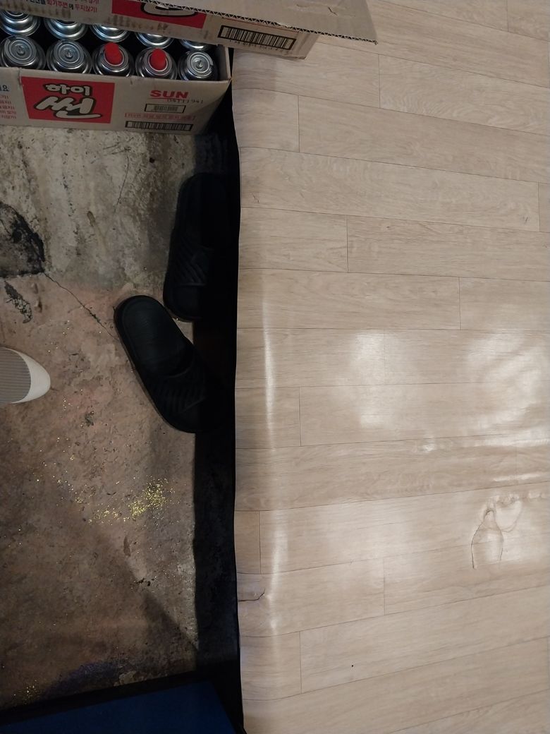 고깃집이라 그냥 바닥도 미끄러운데 끝부분 장판이. 저렇게 있는지모르고 그대로 낙상을 했어요ㅜㅜ