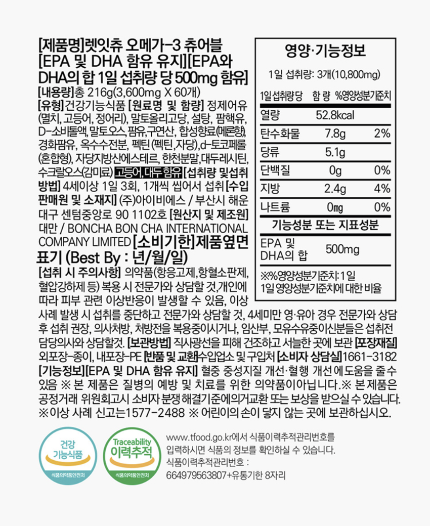 5. 오메가3 3알을 복용해야 epa+dha의 합으로 500을 드시는 것이 맞습니다