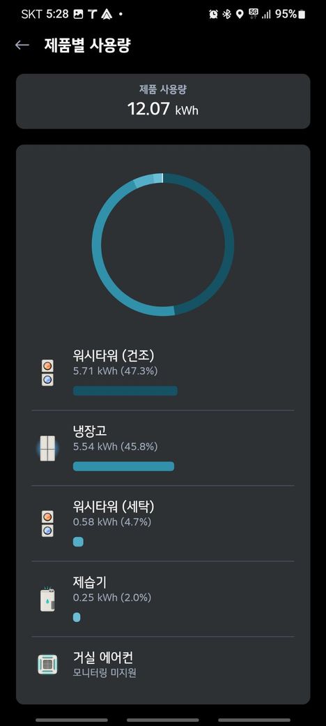 첫번째 사진처럼 다른 lg제품은 전부 전력소비량이나오는데 시스템에어컨만 모니터링 미지원이라고 뜹니다..당연히 시스템 에어컨은 와이파이 연결해서 씽큐앱에서 조절가능한데 전력소비량만 연결?이 안되네요..ㅠㅠ 어떻게해야 연결 가능할까요?