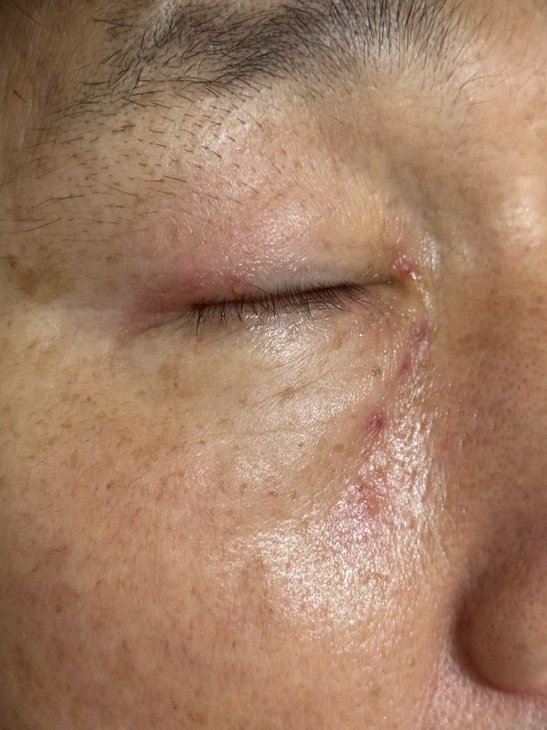아버지 눈에 이런 게 생겼는데 뭘까요....? 처음에 눈 앞머리쪽에 하나가 생기더니 점점 번지더라고요