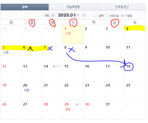 원래 목요일은 대체가 안되었음으로 목요일 근무시 유급처리해야합니다.