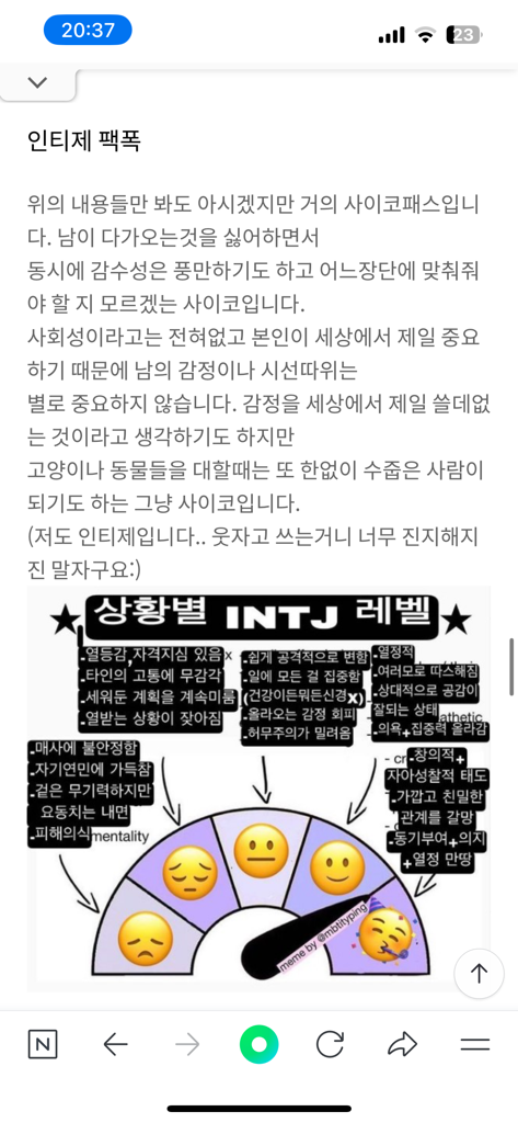 INTJ 여자분들 실제로 보고싶어용 ISTJ랑 INTJ는 전세계적으로 2% 밖에 없어서 더 그런가..
