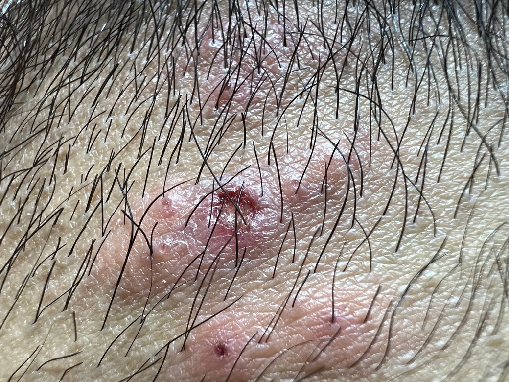 올려주신 사진만으로 미루어 모낭염의 가능성이 생각됩니다.