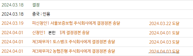 채권사와 제3채무자에는 4/3에 결정정본 도달했다고 뜨는데요.