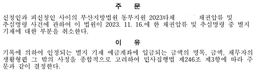 받은 결정 정본의 글이 압류 해제된 것이 맞는지 궁금합니다.