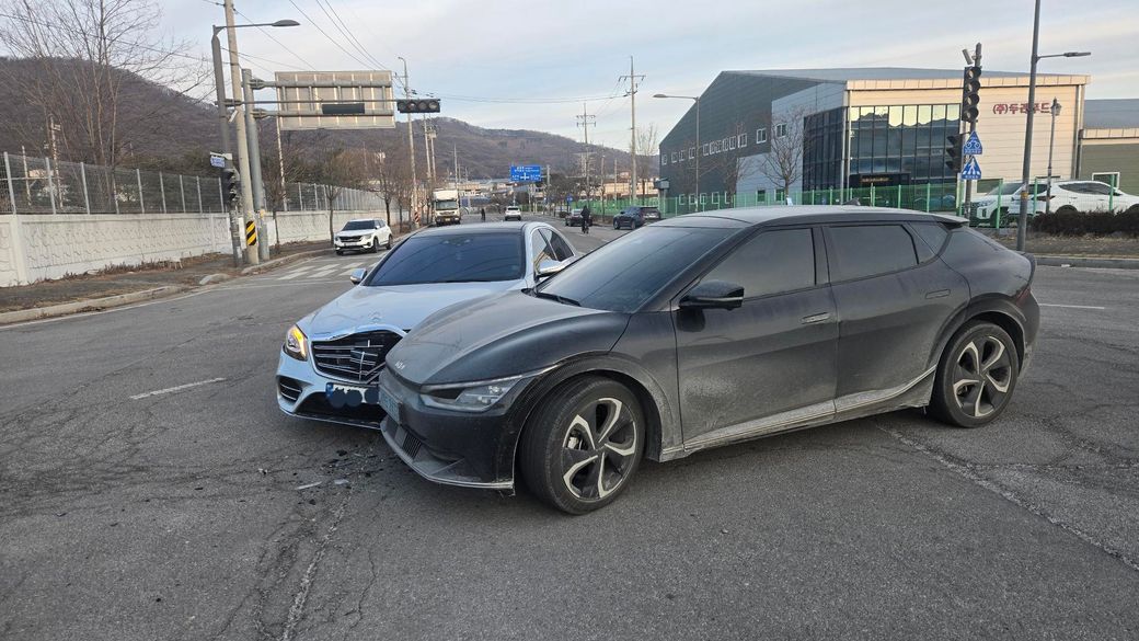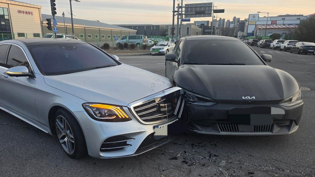 사고는 신호등은 있으나 꺼져있는 사거리였으며 상대차량은 교차로 진입전 감속이나, 경적 회피시도 없이 보조석 타이어 쪽 측면 충돌한 사고이며 충돌직전까지 멈추지 않았습니다. 저는 교차로 진입전 속도를 줄이고 서행하면서 진입했고 진입 후에는 정면에 도로에 주차되어있는 차량들 때문에 중앙선을 넘어서 오는 차량을 주시하고 있어서 충돌 직전 피할 수 없었으며 상대방은 도로교통법 26조 위반 사실 적용되어 스티커 발부 및 벌점 받은 것으로 알고 있습니다