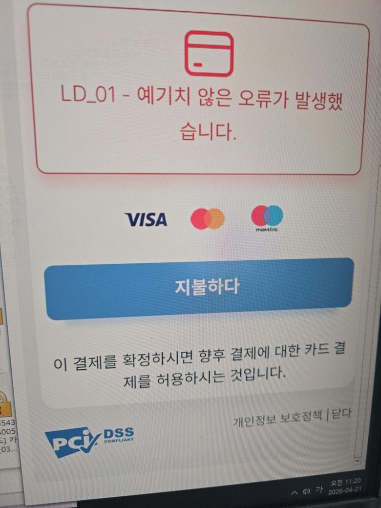 LD_01오류는 보통은 해외결제 인증 실패인 경우가 있습니다.