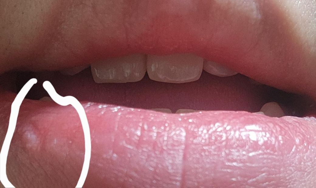 2시간전까지만 해도 없었는데 갑자기 이렇게 물집인거같지는 올라왔습니다 이거 헤르페스인가요
