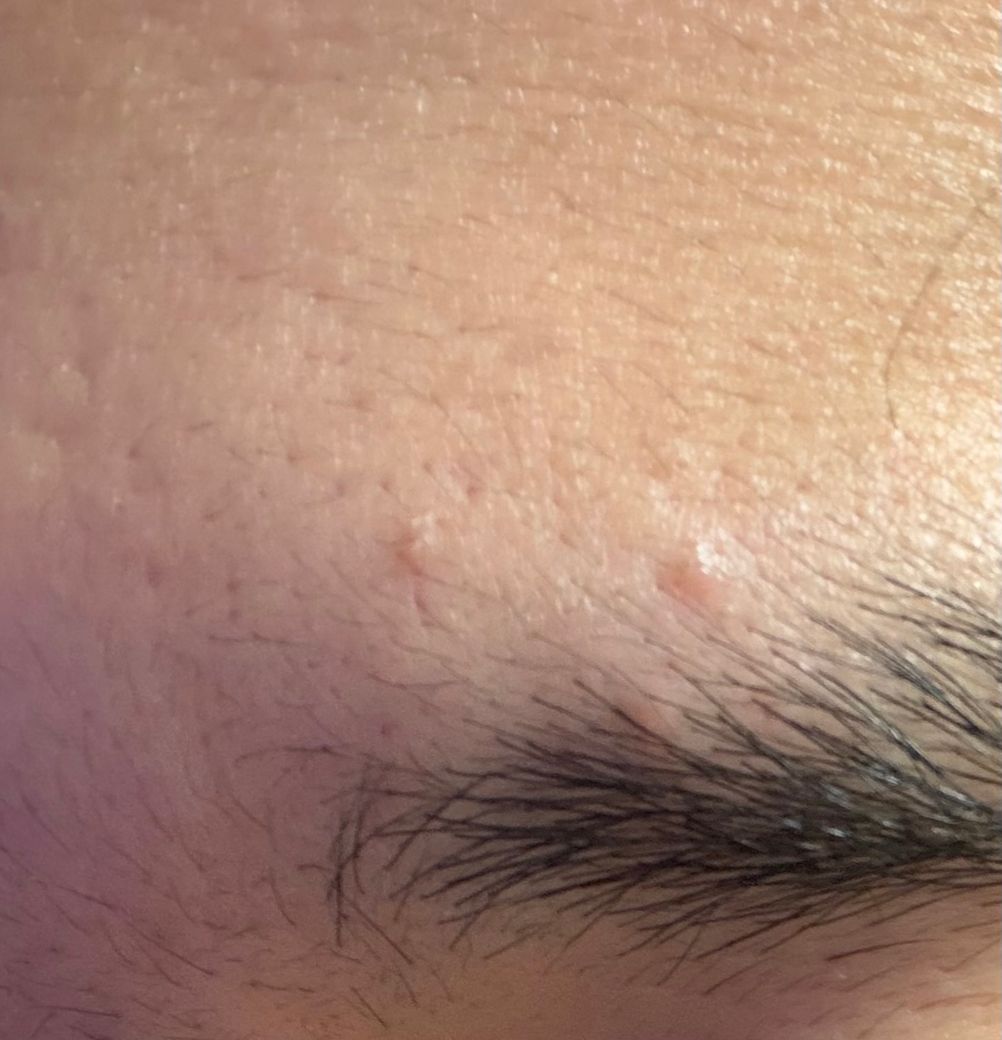 편평사마귀의 가능성이 충분히 있어 보이는 소견이긴 합니다만, 반면에 단순히 일시적인 트러블일 수도 있습니다. 일단은 무언가 하지 말고 경과를 지켜보시길 권고드리며 시간이 지나도 사라지지 않는다면 가능성을 충분히 고려하여 실질적으로 피부과 진료 및 검진을 통한 구체적인 감별 진단을 받고 그에 맞는 치료를 받아보시길 권고드립니다.