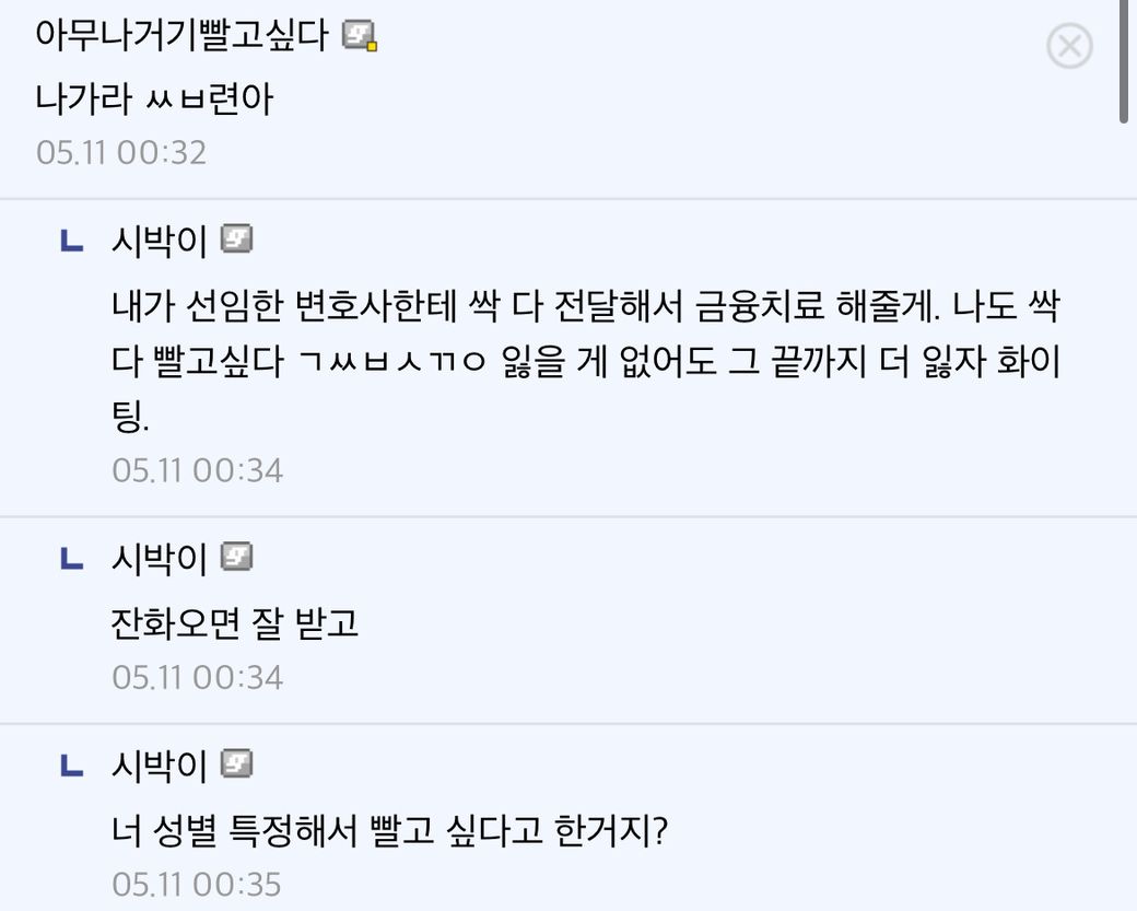 대화내용은 이렇게 되어 있습니다게시글은 이준석 까는 내용이였습니다