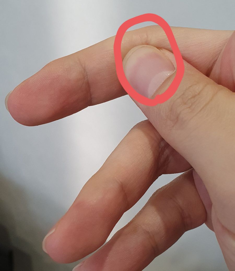 안녕하세요. 몇달전부터 오른쪽 중지 손가락 꺾이는 부분에
