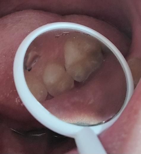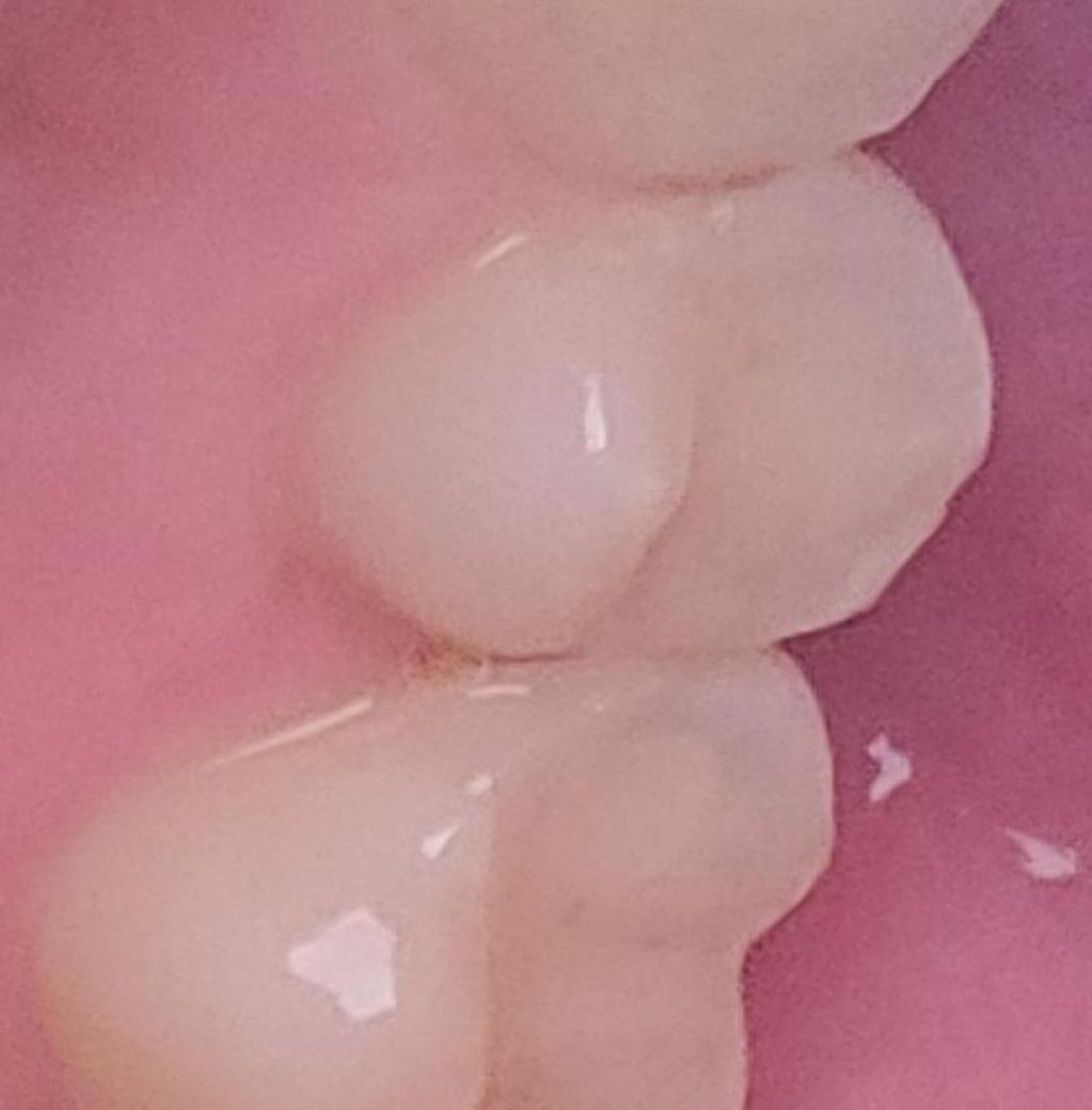 제가 양치하고 치아를 살펴보니 소구치와 대구치 사이가 까맣게 보였습니다.