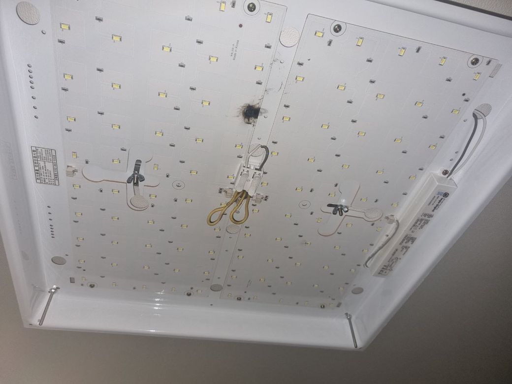 안정기 문제일 확률이 높으나 가장 간편한 방법은 등 전체를 교체하는 것입니다. LED 소자가 수명을 다하면 안정기는 수명이 남았지만 또 같은 현상이 발생할 수 있거든요. 부디 잘 해결하셔서 밝은 방이 되었으면 좋겠습니다.