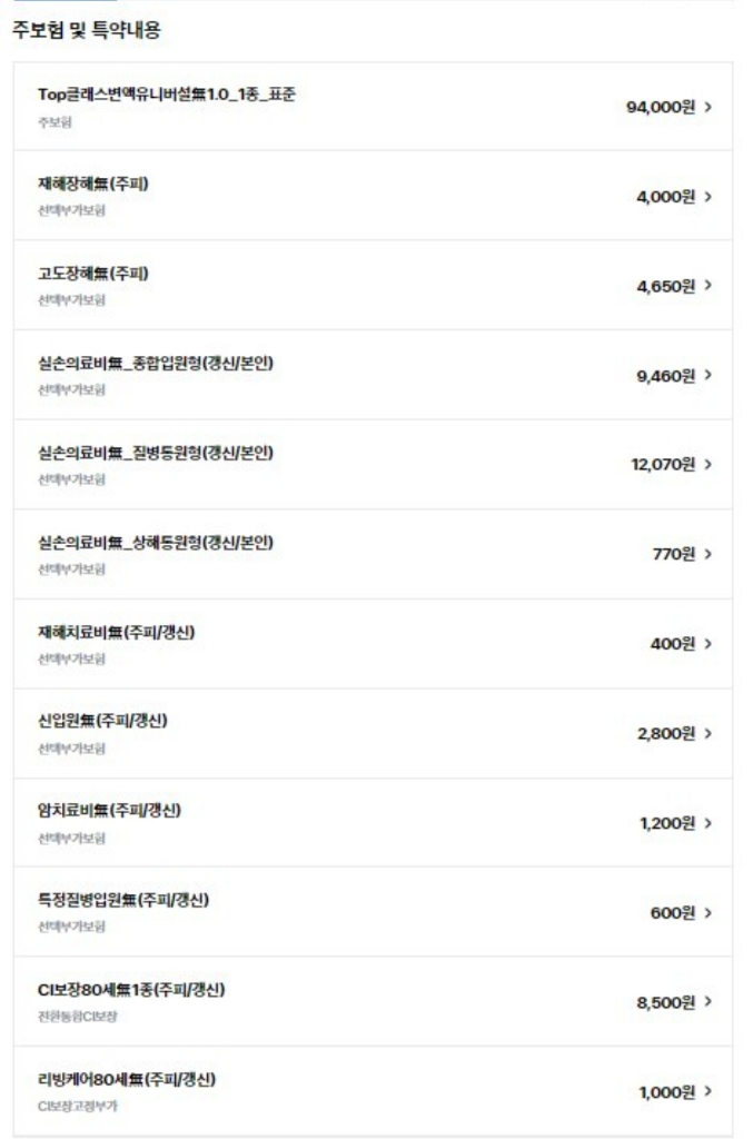 어플에서 캡쳐했더니.. 특약사항과 보장내용이 보기에 불편