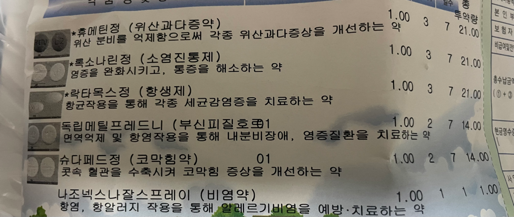 비염으로 독립메틸프레드니 슈다페드정이량 나잘스프레이를 1주일 가까이 복용중인데