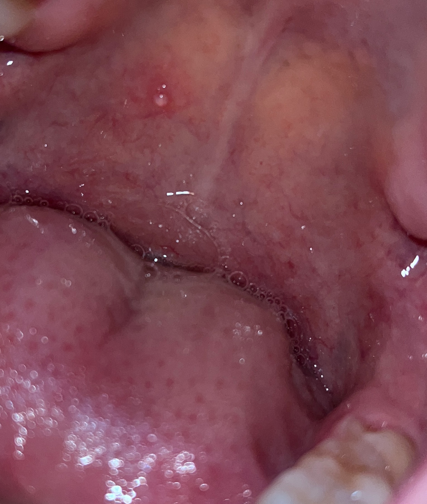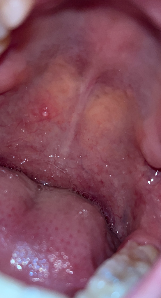 구강암은 아닙니다. 저부분은 뼈라고 생각하시면됩니다. 위쪽은 자극때문에 그런거니 크게 신경쓰지 않으셔도 됩니다.