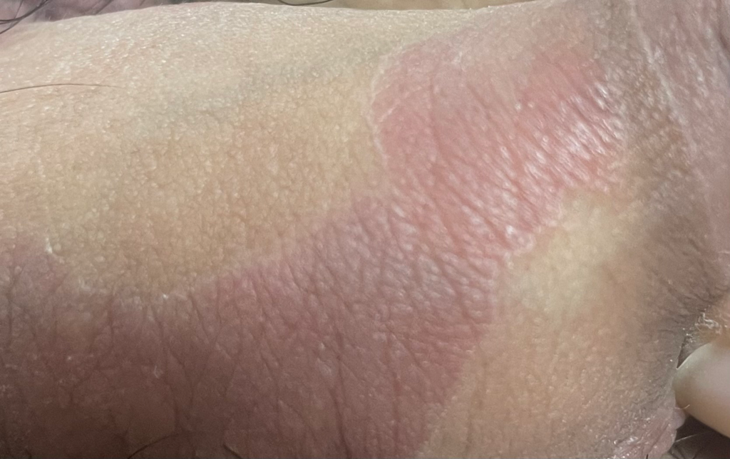 습진 : 습진은 피부의 염증성 질환으로, 빨갛게 발진이 생기거나, 가렵거나, 건조한 등의 증상이 나타날 수 있습니다.