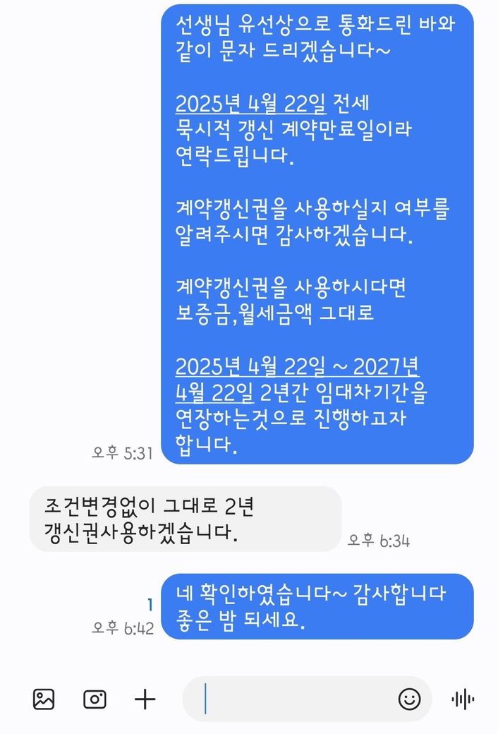 전세 연장 계약갱신청구권 사용 문자 대화만으로 성립 가능한가요?