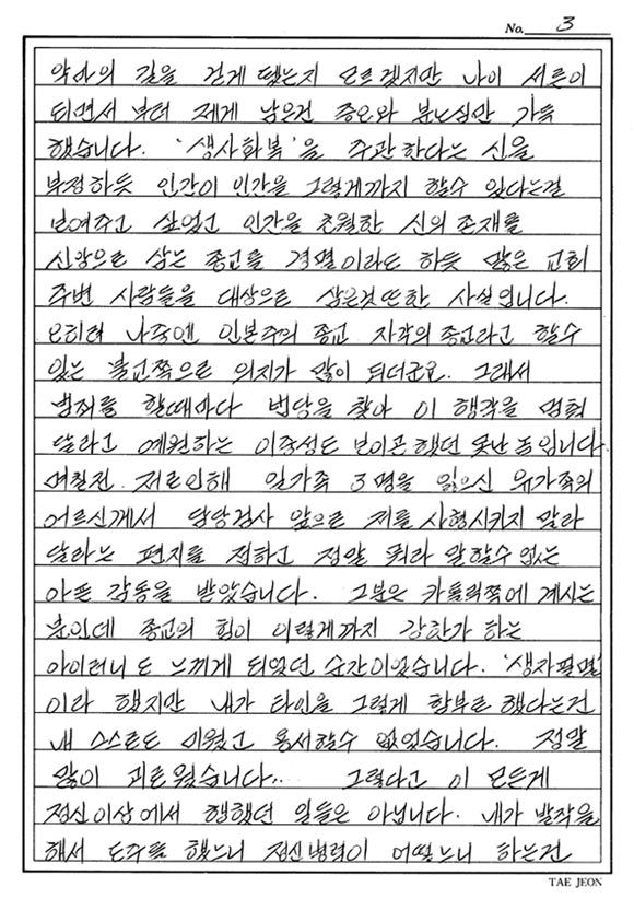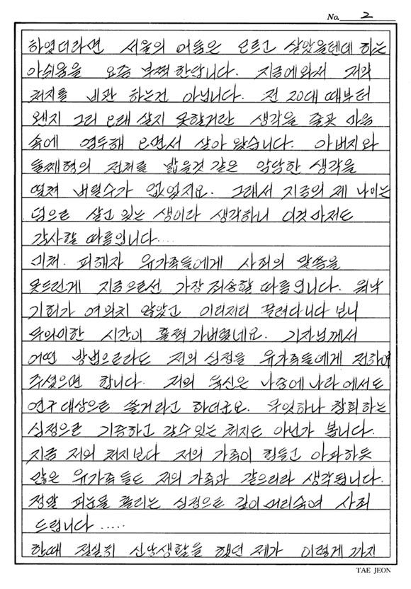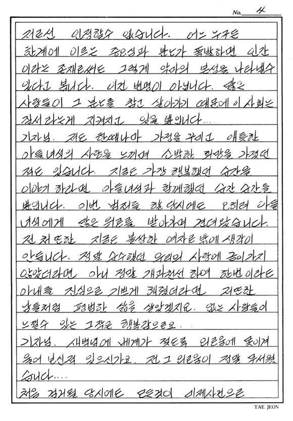 유영철 자필편지같이