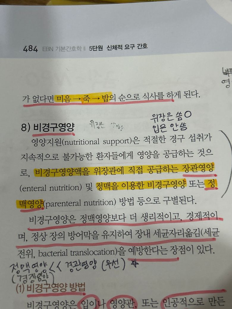 인데 비경구영양에 정맥영양이 속하는 거 아녜요 ㅠㅠ??