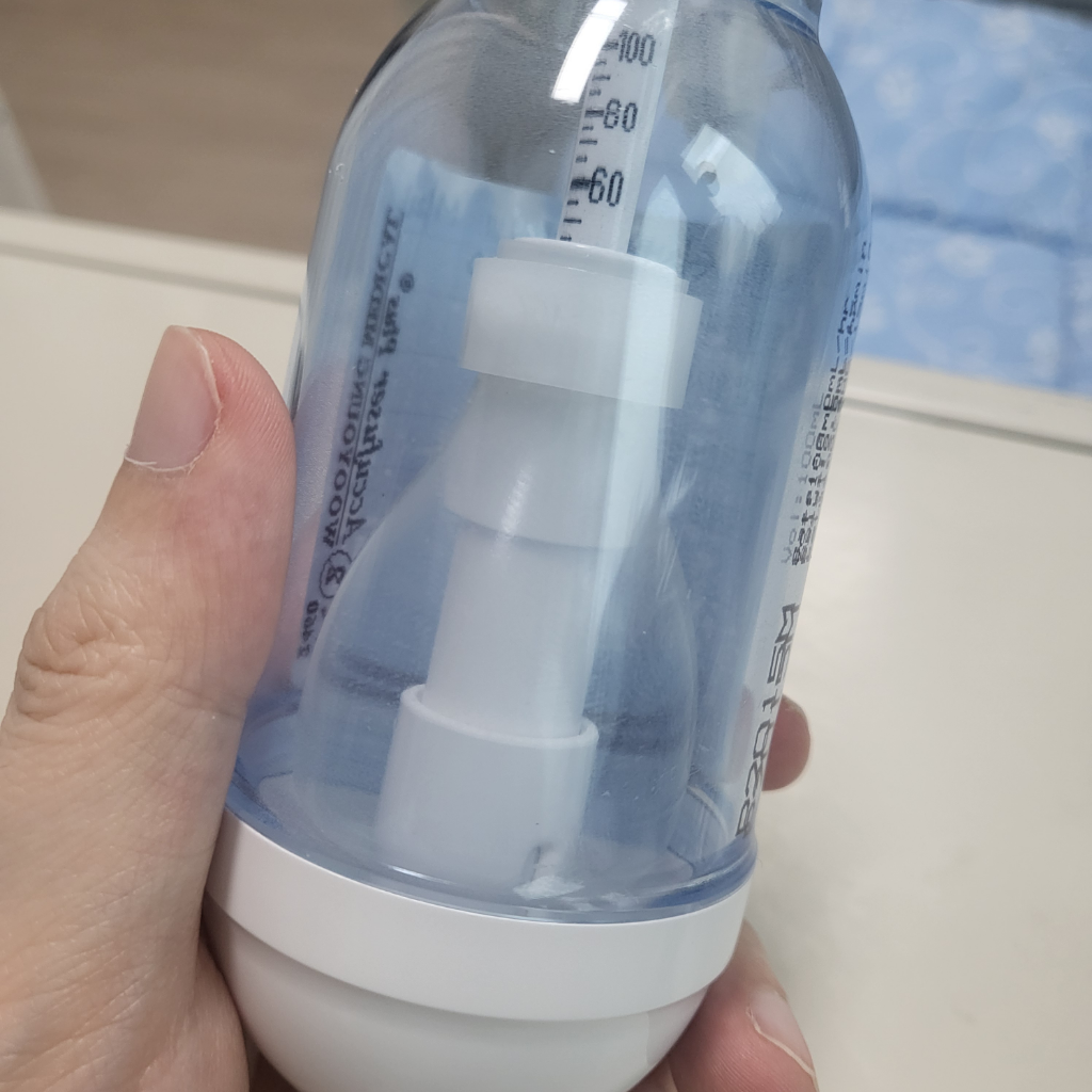 아직 남아 있는 겁니다. 손으로 쥐고 있는 쪽이 아직 부풀어 오른 것이 남은 용량이거든요. 안 아프다면 그냥 빼달라고 하셔도 됩니다.
