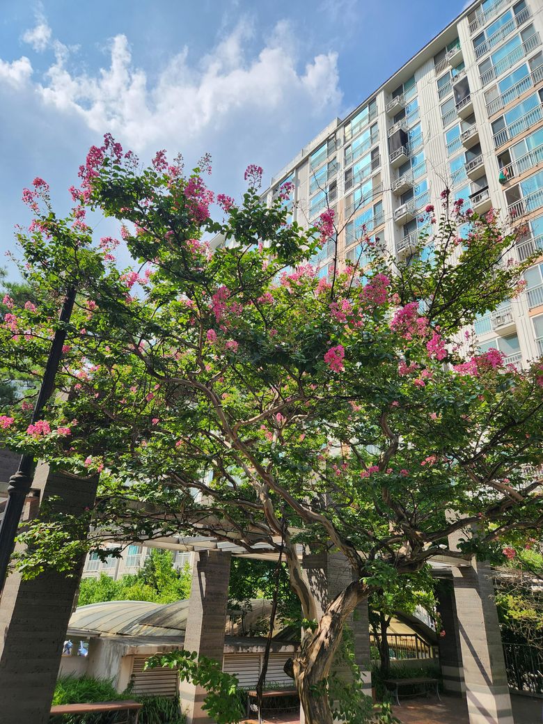 이꽃은 보름전부터 피기 시작을 하였는데요 사진으로 봤을때 분홍색 꽃이 피었습니다 그리고 이렇게 큰나무에서 이렇게 이쁜꽃은 처음 보아서 문의합니다 이꽃의 이름은 무엇인가요?