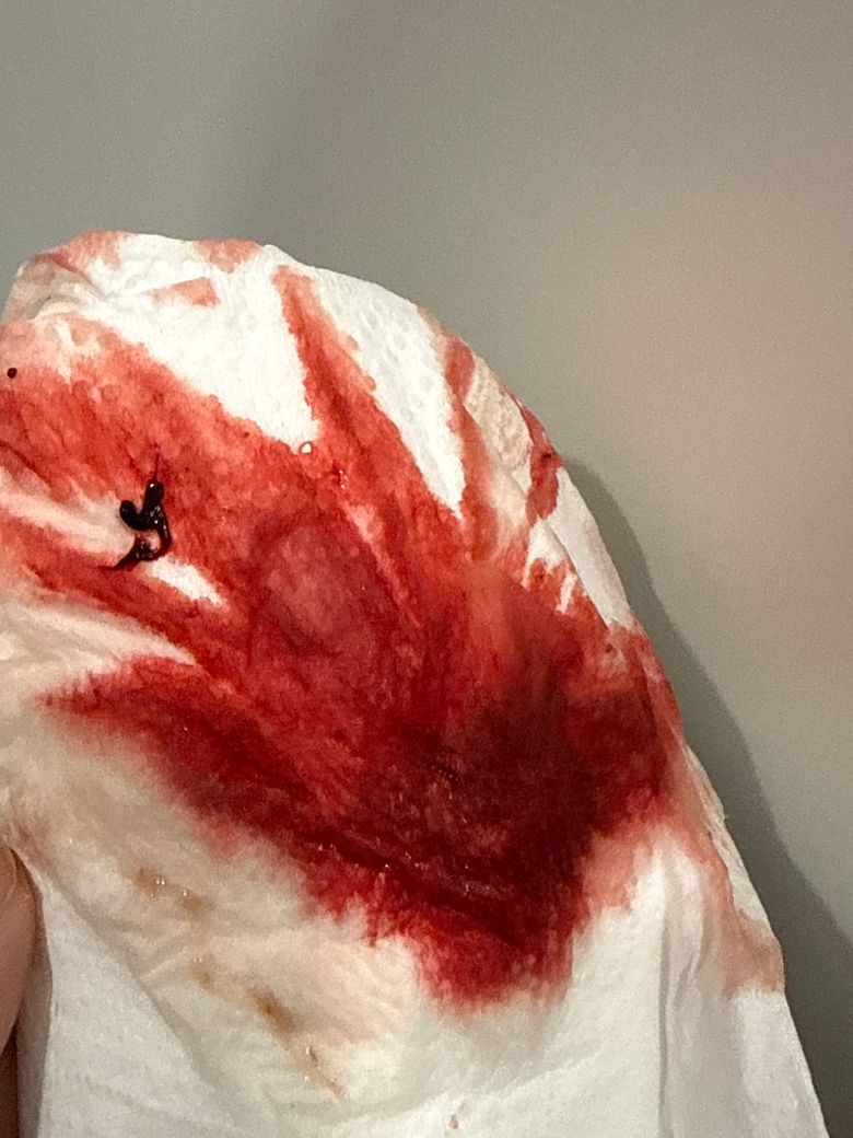• 양이 휴지 전체에 넓게 묻을 정도이며