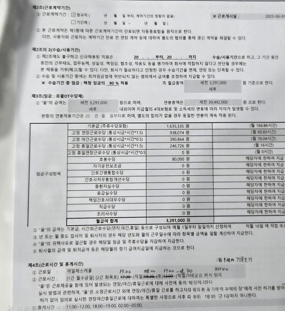 병원 야간 원무 (격일제) 임금 문의드립니다!