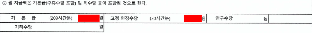 근로계약서에는 기본급 + 고정연장수당(30시간)으로만 작성되어 있고