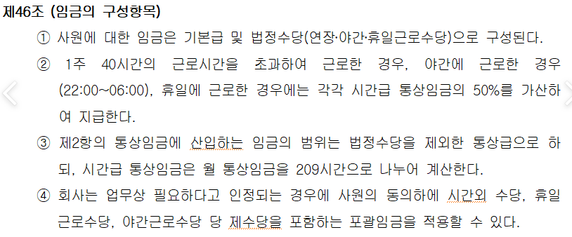 취업규칙에 임금관련 사항은 아래와 같습니다.