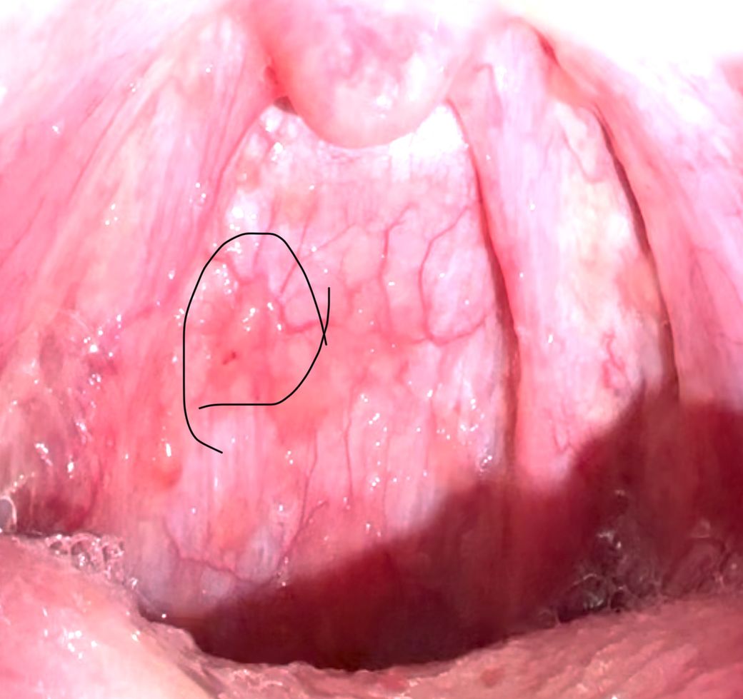 올려주신 사진에서 큰 이상 소견은 없으나 목 안쪽으로 손가락을 넣는 행위는 점막의 상처와 감염의 원인이 될 수 있으므로 피할 것을 권합니다.