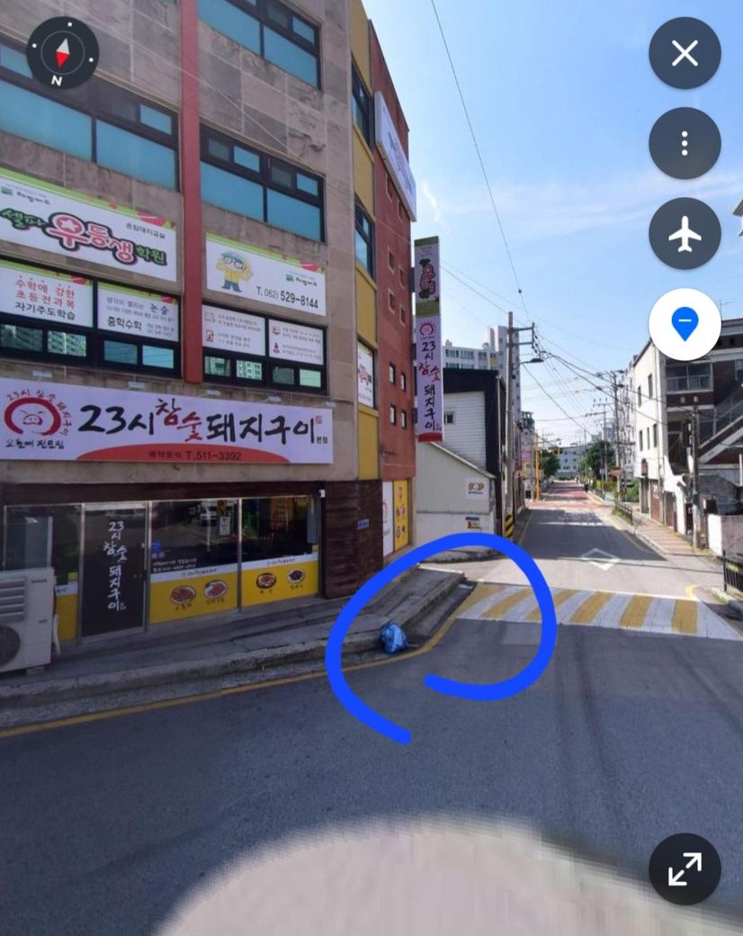 지인이 파란색으로 표시된 위치에 주차를 잠깐 하였는데 불법주정차 과태료가 날라왔는데 스쿨존으로 분류가 되는 위치인가요? 황색 실선이어도 그런가요?