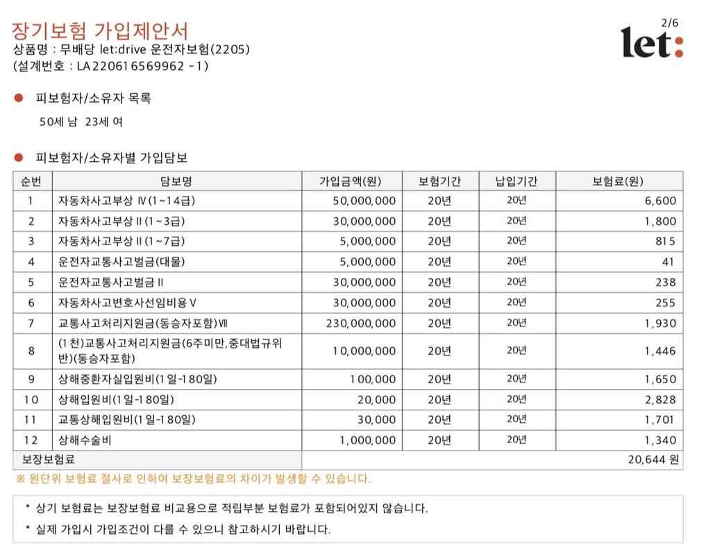롯데손보 상품은 최소보험료가 2만원으로 책정되어있는지 상해수술, 입원비 등을 끼워넣었네요,