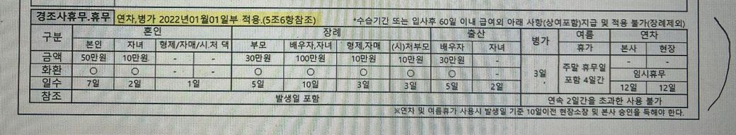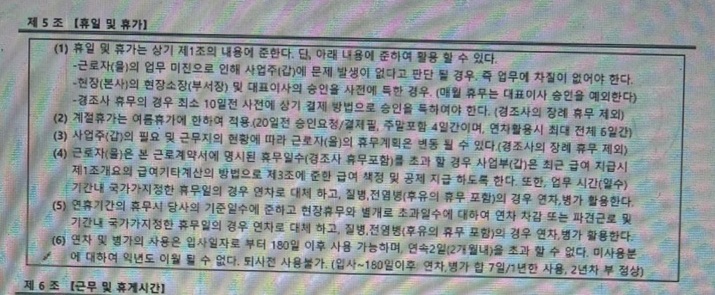 두번째 사진 근로계약서 병가3일, 여름휴가2일은