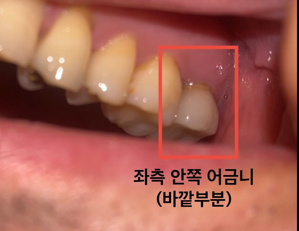 2. 바깥쪽 잇몸은 크게 내려앉지 않았음.