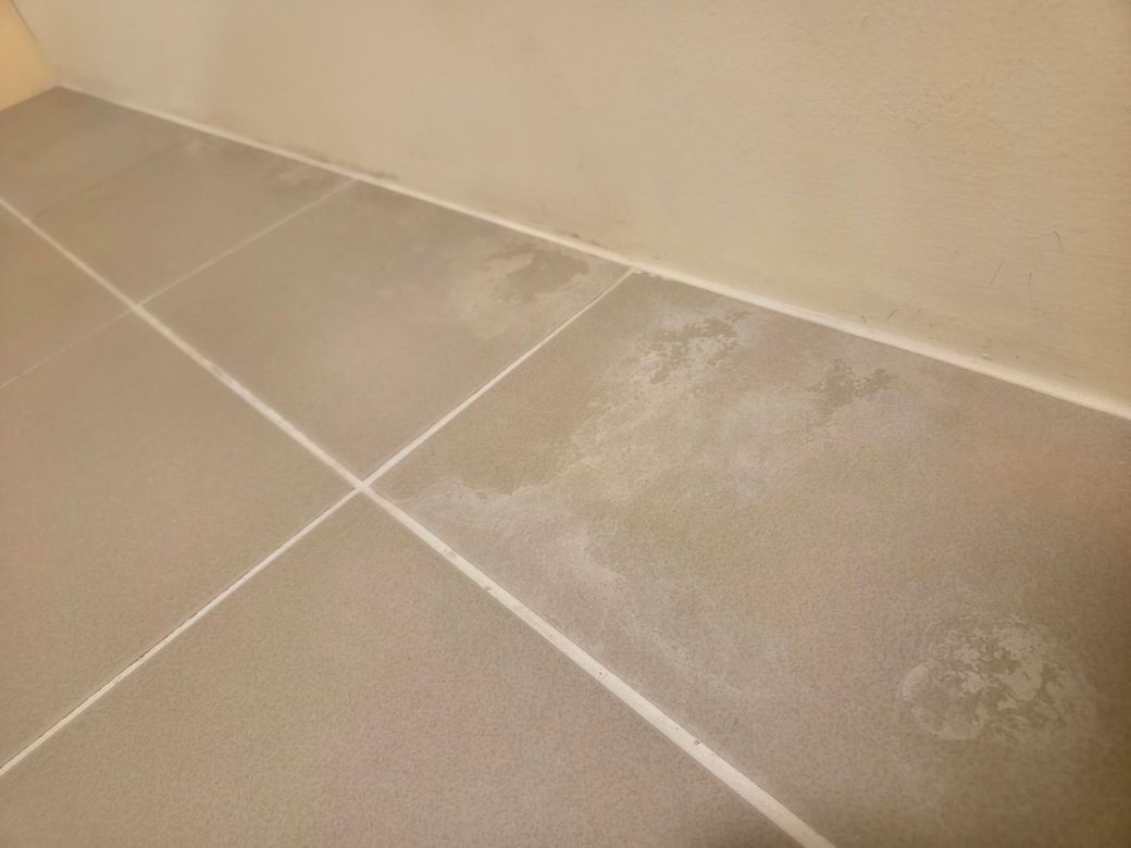 사진 상 회색부분은 수돗물 속 미네랄이 마르면서 남긴 하얀 자국 특히 검수 자리에 잘 생기며 세탁기에서 흘러나온 물에 녹아있던 성분이 바닥에 들러붙으며 생긴 자국일수도 있습니다. 석회자국은 룩 석회제거제를 사용해서 없앨 수 있는데 고무장갑 착용 후 해당 부위에 뿌리거나 적신 천을 덮어 5~10분 정도 방치한 후 수세미나 솔로 문질러 제거하면 됩니다. 식초와 베이킹소다를 반반씩 섞어 뿌리고 10분 이상 방치한 후 문질러 씻어낼수도 있습니다.