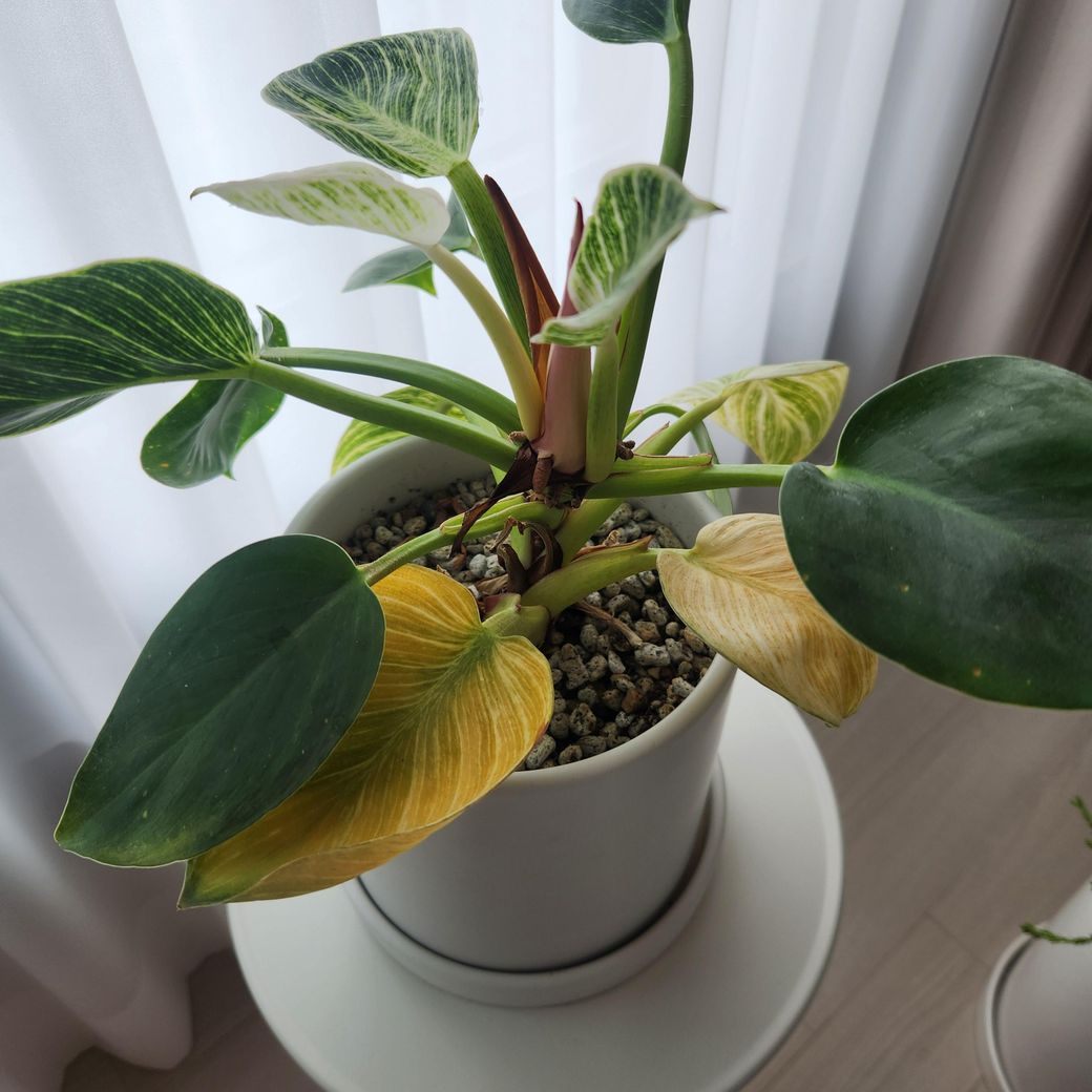 버킨콩고는 과습에 민감해요~ 흙이 축축한 상태면 뿌리가 썩고 아랫잎부터 노랗게 변해요 오래된 잎일 수도 있고 빛이 부족하거나 그럴 수 있어요 겉흑이 완전히 마르고 1~2일 지나면 주세요 이미 노란잎은 회복되지 않으니 잘라주셔야해요