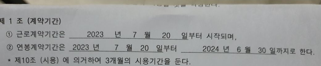 2023년 7월 20일부터 2024년 6월 30일까지는 해당 연봉액이 적용되는 '연봉적용기간'을 규정한 것으로 보입니다.