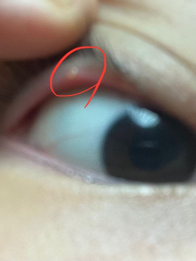 제목 그대로 입니다 화질이 좀 그래서 잘 안보일수 있는데 안쪽에 났더라고요 그냥 눈 뜨면 아프지도 않고 별로 거슬리는것도 없어서 몰랐다가 속눈썹 영양제 바르다가 알게되었어요