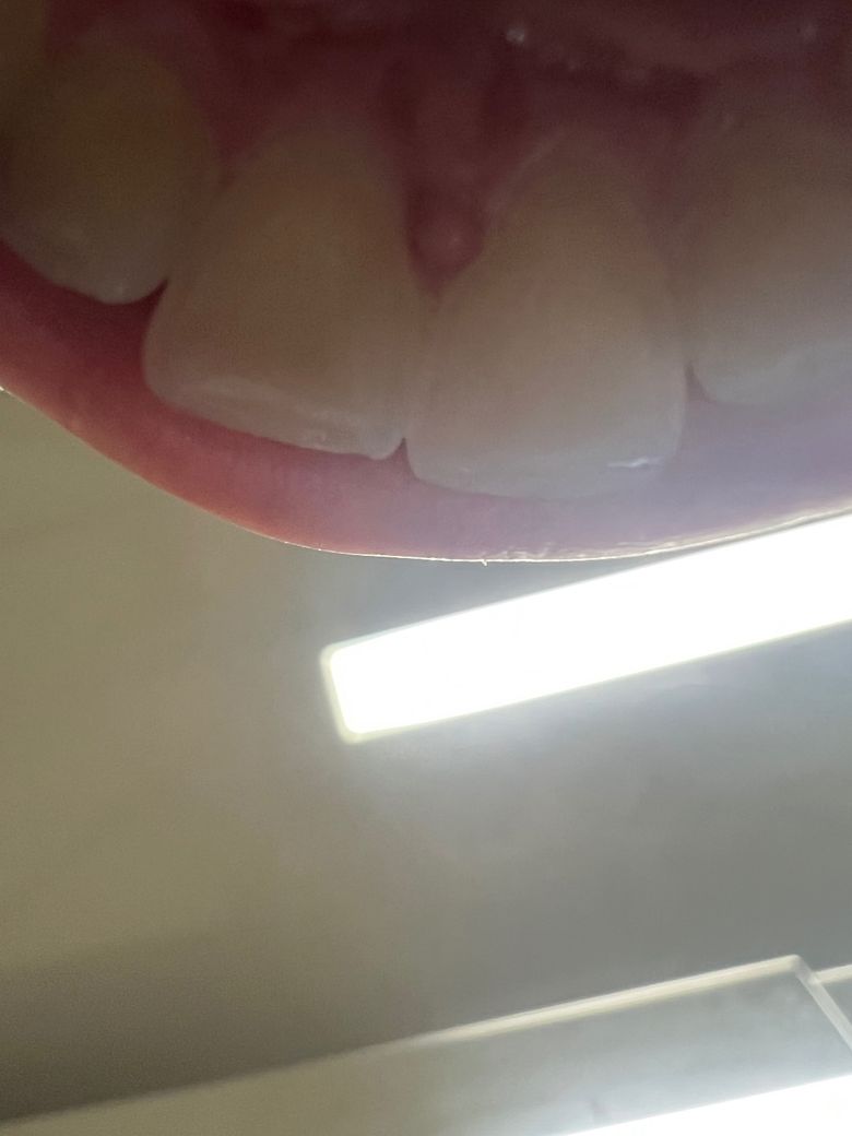 잇몸이 자극되면 해당 부위가 붙거나 할 수 있습니다. 사진으로 봤을 경우에는 크게 문제가 되지 않을 것으로 생각됩니다. 불편감이 있거나 걱정이 되신다면 치과에서 진료를 받아보는 것이 좋습니다.