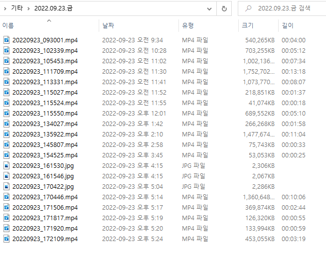 동영상 용량 : 50 GB 정도