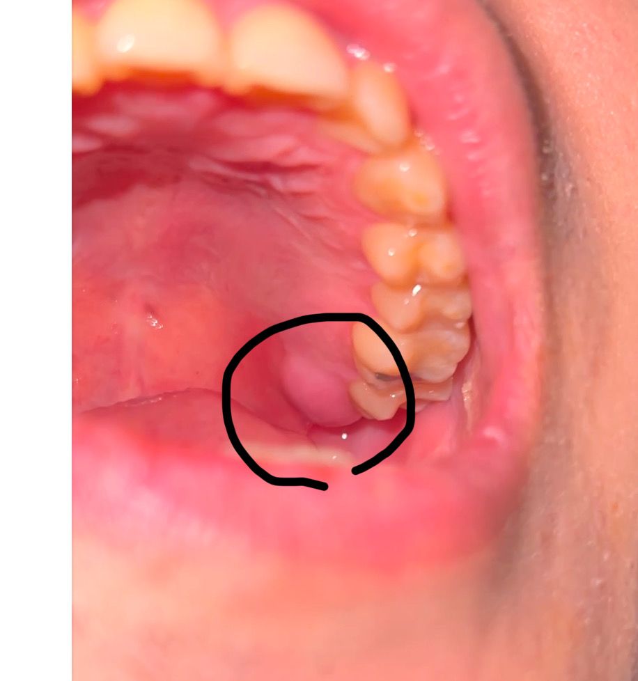 사진만 봐서는 정확히 알기 어렵습니다만 잇몸 내 염증으로 파동성 농이 잡힌 경우일 수 있고, 물혹인 경우일 수도 있을 것 같습니다.