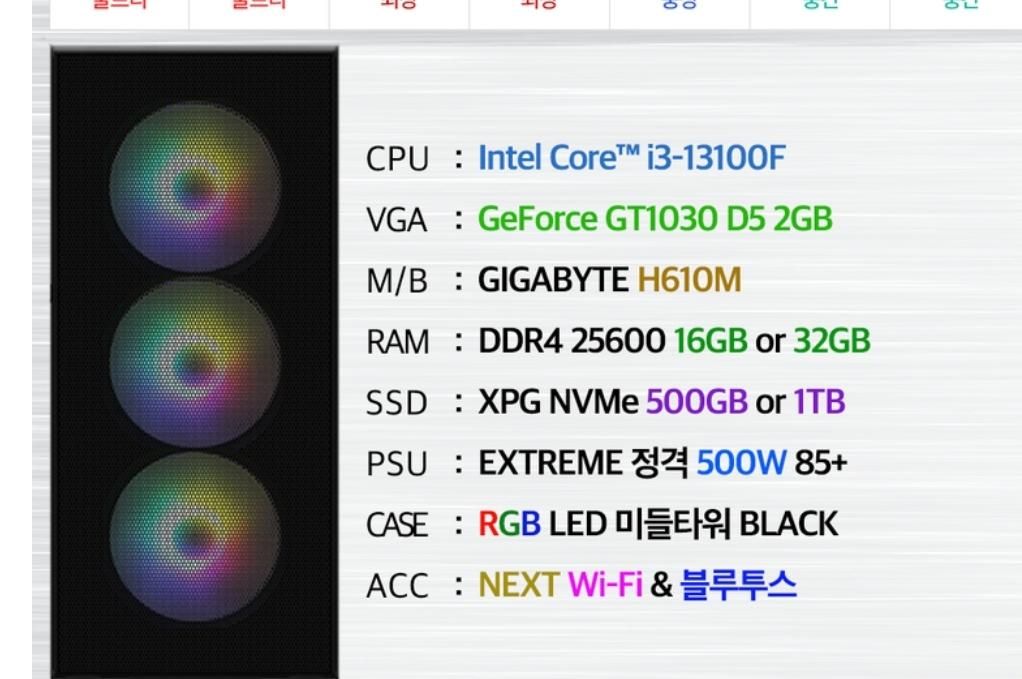 컴퓨터 3가지 보니까 견적이 그래픽 빼고는 다 똑같네요