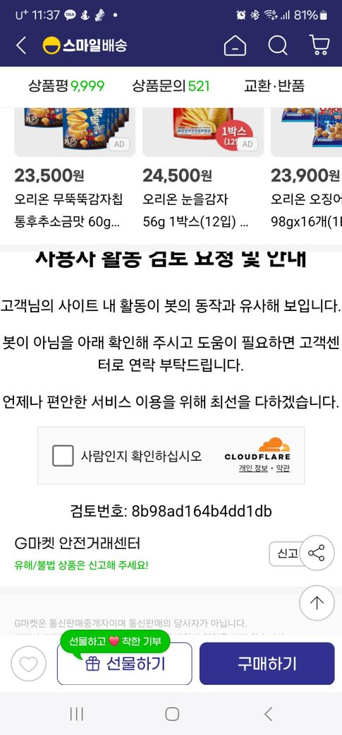 '사람인지 확인하십시오' 라고 확인창 열리는 지마켓~왜그런걸까요?