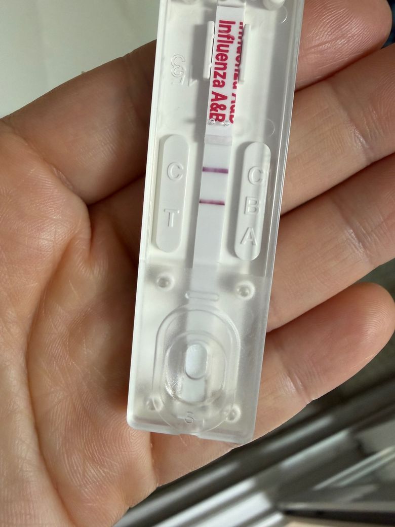 요즘에는 독감 자가키트도 있군요. B만 선이 보이니깐 B형 독감을 의심해 볼 수 있겠습니다. 독감이라고 해도 무조건 항바이러스제 투약이 필요하지는 않아요. 증상이 경미하다면 증상 조절 약물만 사용하면서 쉬면 충분히 회복이 됩니다.