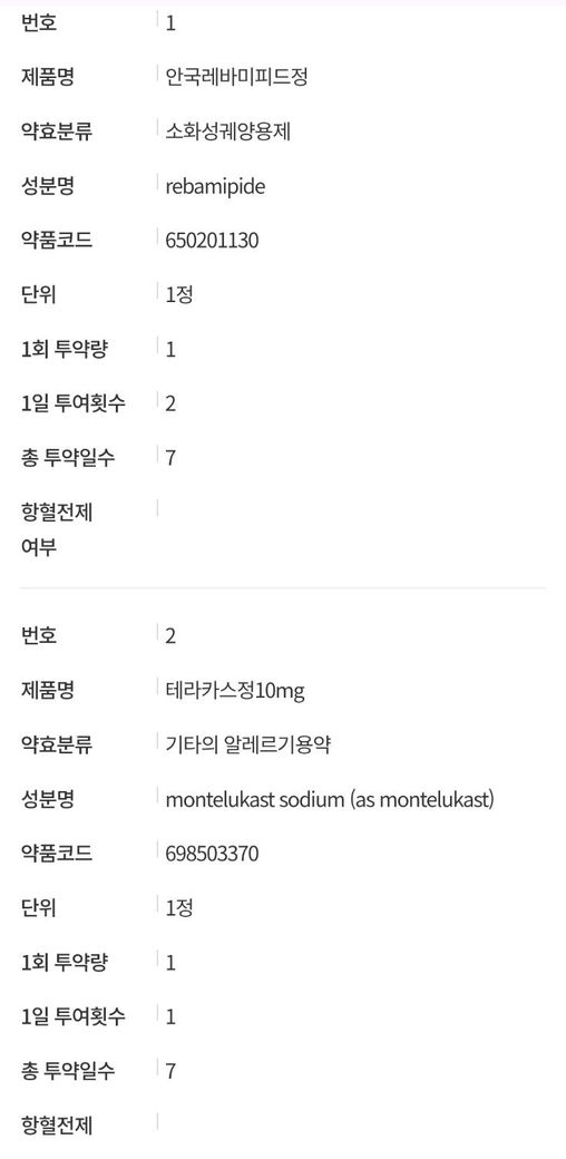위 처방약의 경우 항생제나 스테로이드가 포함되어있지 않으므로 하루만 쉬어주면 헌혈이 가능할 것으로 생각됩니다.