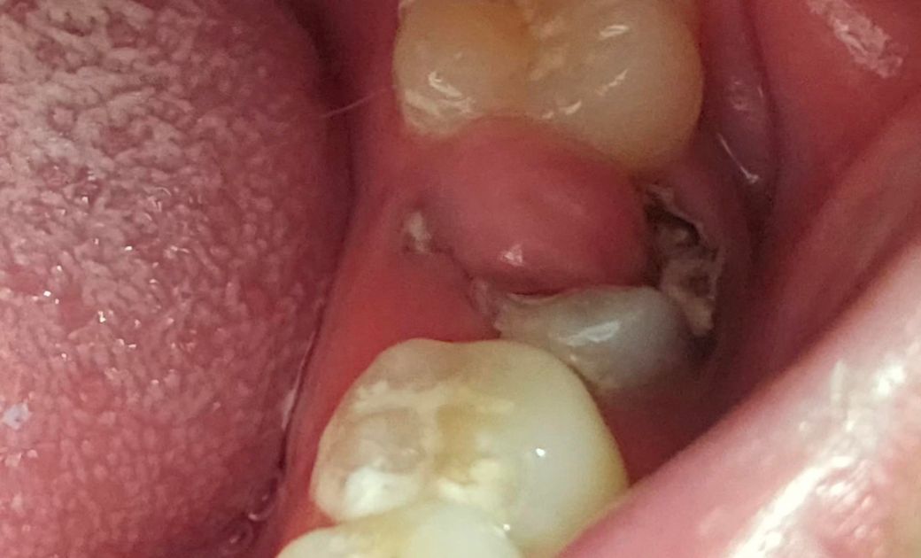 현상태는 치아가 충치로 깨져나갔고 그로 인해 신경이 노출된 상태입니다 그러다보니 치수가 자극을 받아 저렇게 용종이 생겼고요 신경치료 시도는 해볼 수 있으나 발치 가능성 높습니다