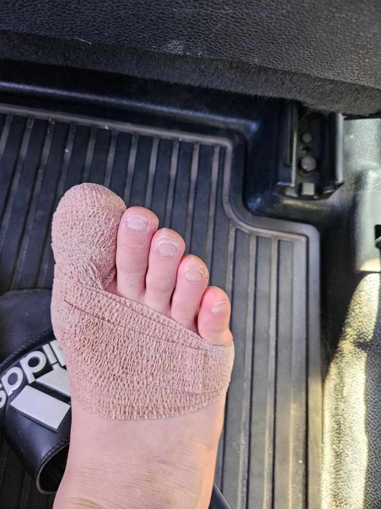 1. 제가 강아지한테 발을 물리고 나서 사진처럼 발이 되어서 정형외과를 가서 치료를 받았는데요... 강아지 이빨은 더러운데 그 세균이 침투? 감염? 그런거 같다고 마취를 하고 긁어냈습니다... 다행이 아주 조금 정도라 사진처럼 테이핑을 하고 4일에서 5일정도 시간이 지난거 같습니다... 병원은 두번 다녀왔고요... 두번째 방문했을땐 선생님을 안뵙고 바로 간호사 님이 소독 해주시고 테이핑을 해주셨습니다... 두번째 테이핑을 할때 보니까 다 나은거 같은데도 해주셨고 내일 방문 하기로 했습니다.