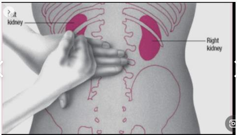 costovertebral angle tenderness라고 해서 아래 사진처럼 두드려봤을 때 통증이 유발된다면 신장결석을 의심해볼 수 있겠습니다.